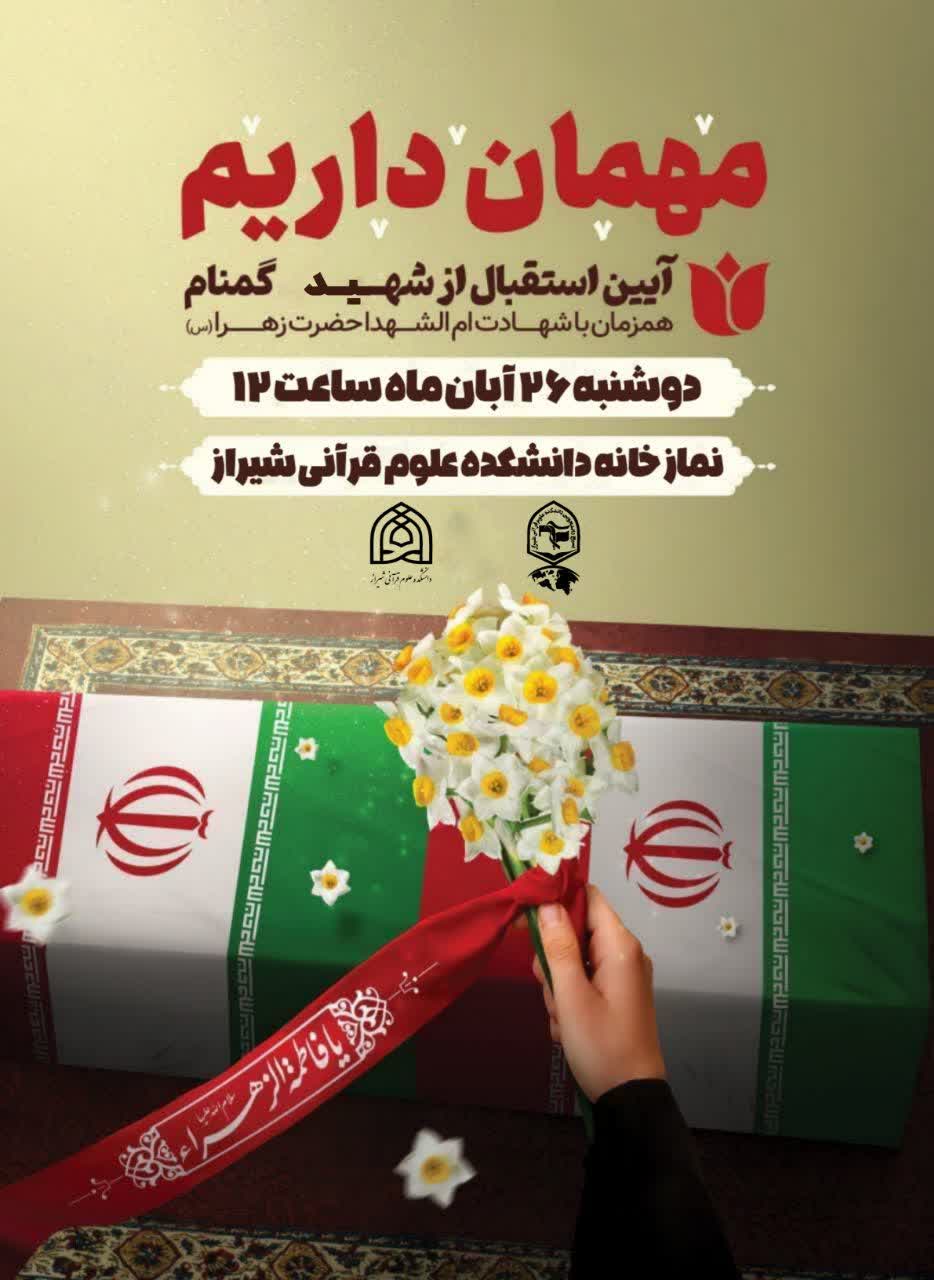 به گزارش ایحا از شیراز:  فضای دانشکده با حضور پیکر مطهر شهید گمنام دوران دفاع مقدس، عطرآگین از یاد و نام ایثار و شهادت شد. مراسم تشییع این شهید عزیز با حضور پرشور دانشجویان، مسئولان دانشکده  و دانش آموزان مدرسه بهار نور معرفت در نماز خانه دانشکده برگزار شدو حال و هوایی معنوی و ماندگار به فضای دانشکده بخشید.